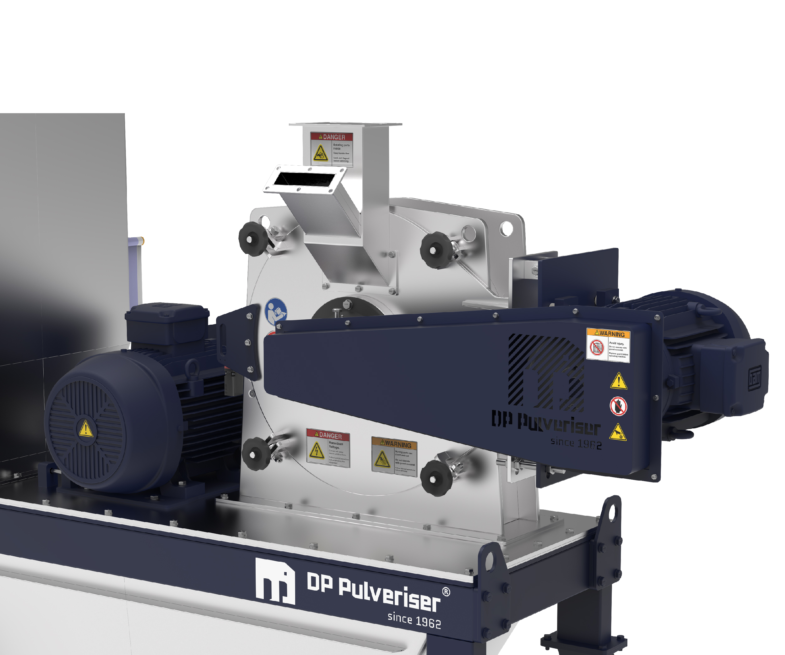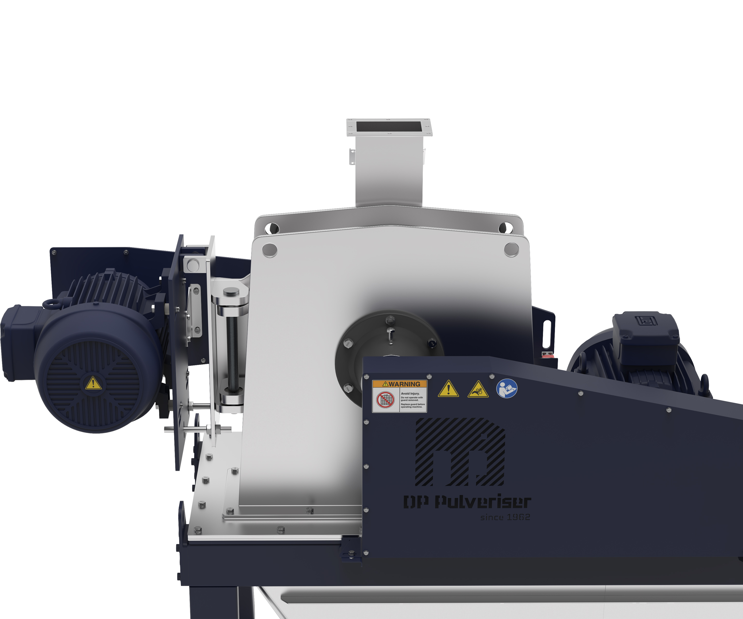 This mechanism is particularly well-suited for brittle, crystalline, greasy, or heat-sensitive materials, delivering fine grinding without the need for screens. After size reduction, the fine product exits the chamber via the fine product & air outlet(7) and can be collected or pneumatically conveyed as per process requirements. The fineness can be easily adjusted by controlling the rotational speed and configuration of the pin discs.