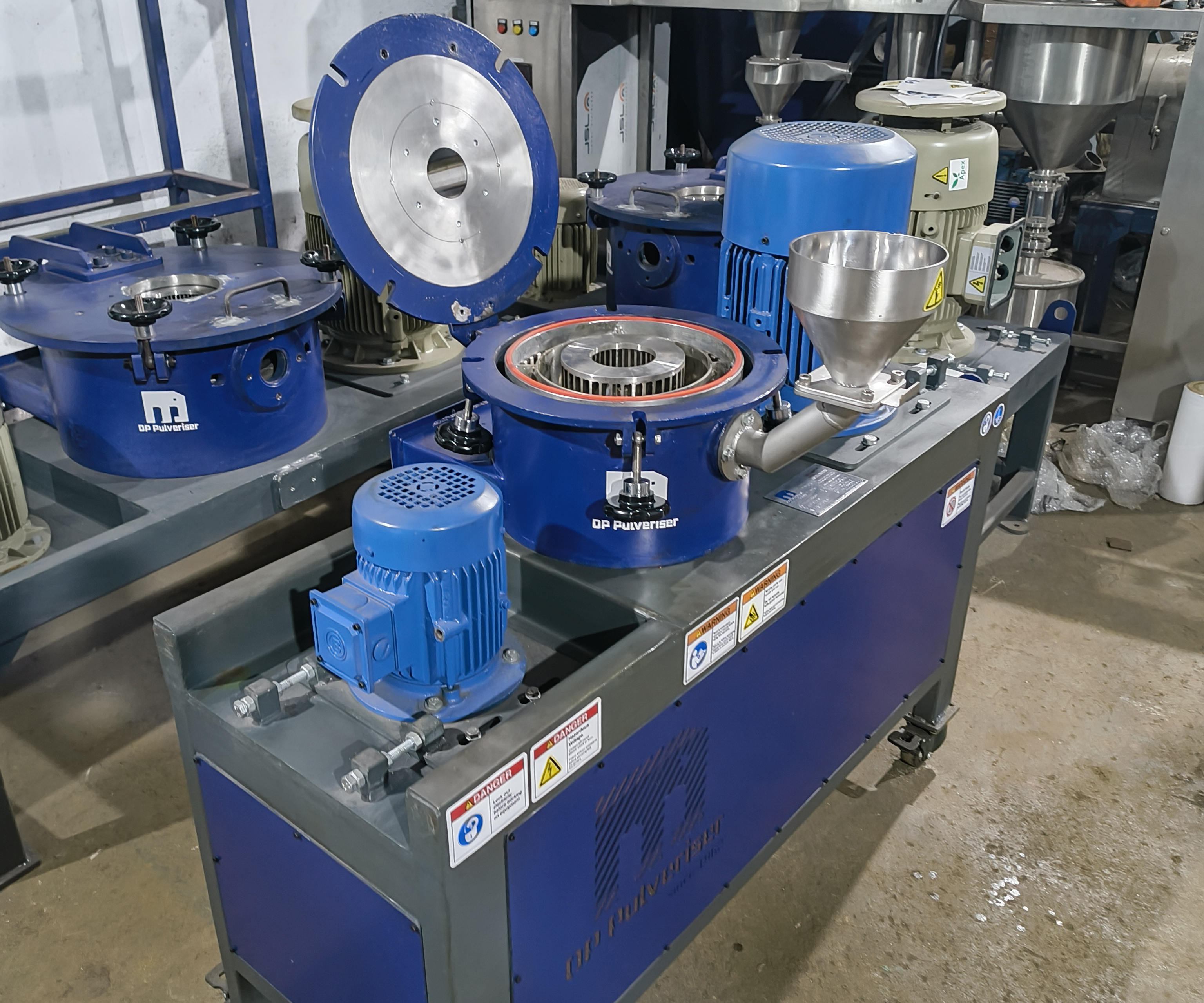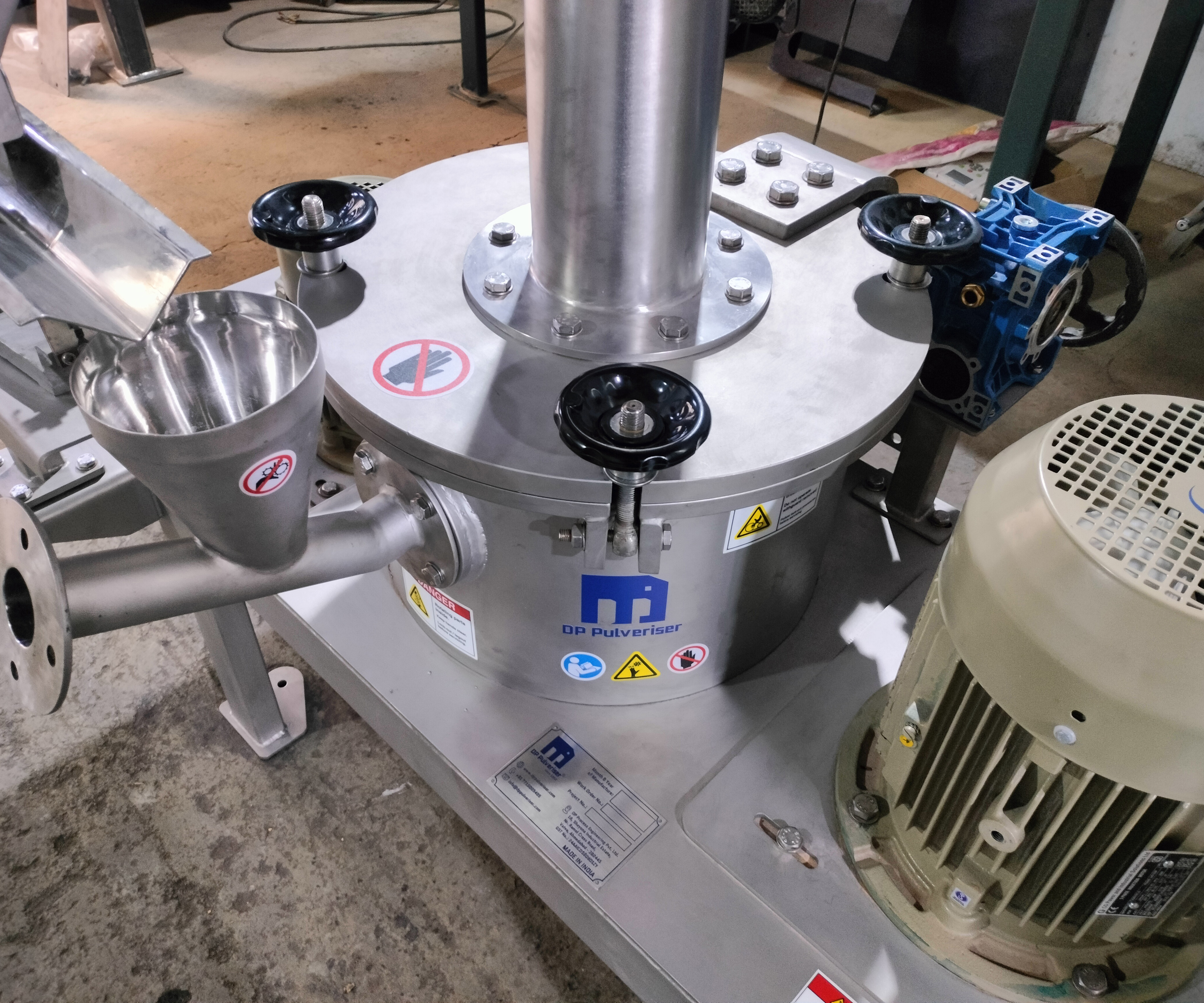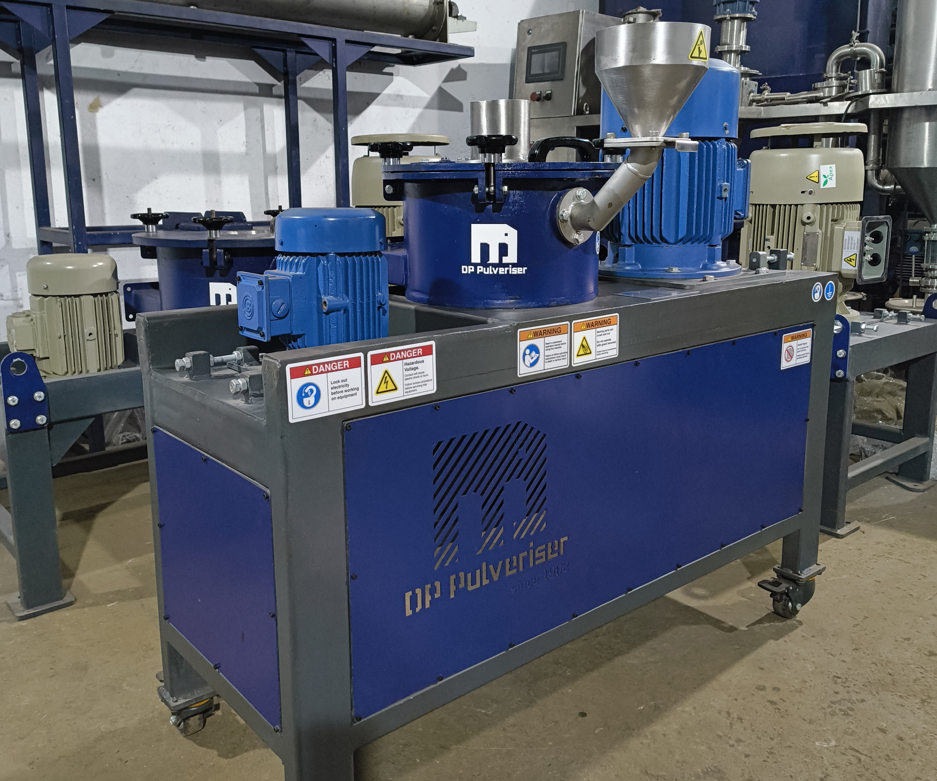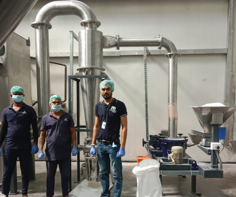 The mixture of fine product and air is then conveyed through external piping to a cyclonic separator, where the product is separated and collected. Any remaining ultrafine dust is carried further to a pulse-jet dust collector, ensuring clean and dust-free air discharge. The system also include a conveying blower to maintain controlled airflow. Overall, the integrated design allows for precise particle size control, energy-efficient grinding, and dust-free operation in a compact and maintainable layout.